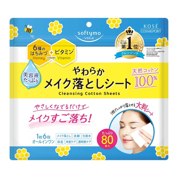 Softymo Cleansing Natural Cotton Sheet, Large Size, 80 Sheets