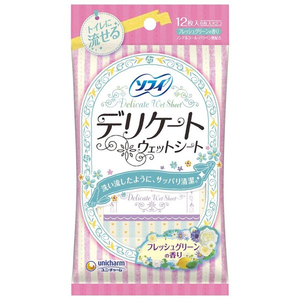Sofy Delicate Wet Green Scent, 6 Sheets x 2 Packs x 4 Packs