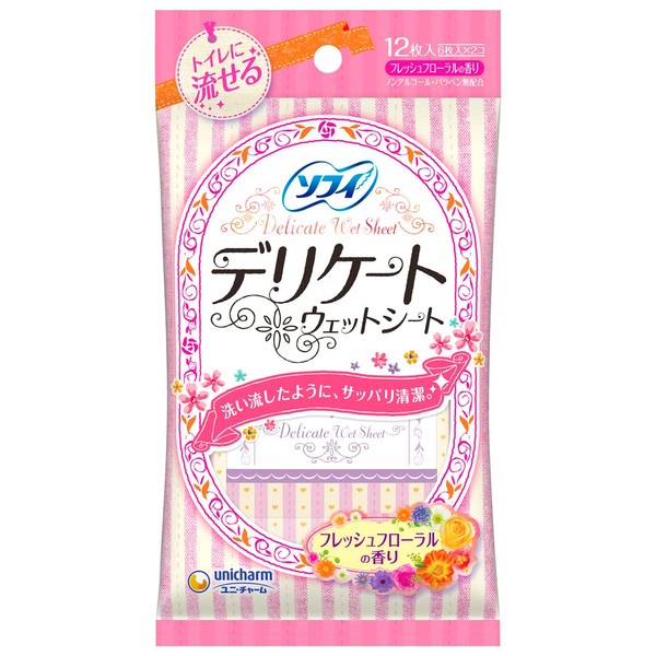 Sofy Delicate Wet Sheet, Fresh Floral Scent, Pack of 6 x 2