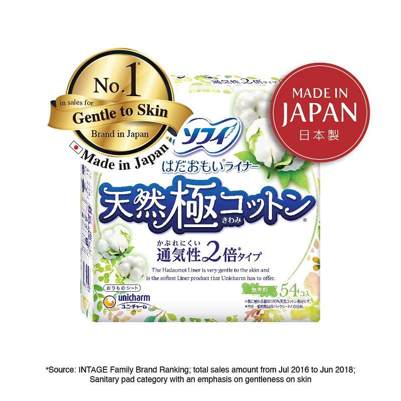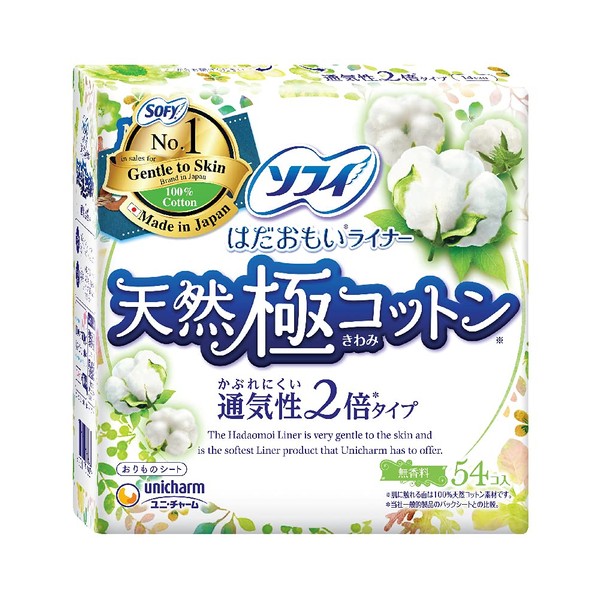 Sofy Hadaomoi Liner, 100% Natural Cotton, 54 Pieces