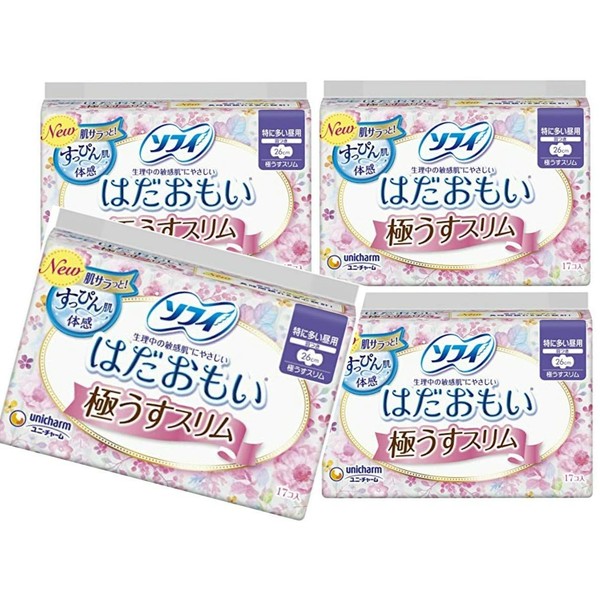Sofy Hadaomoi Ultra Slim for Especially Heavy Days, 10.2 inches (26 cm), With Wings, 17 Sheets x 4 Piece Set