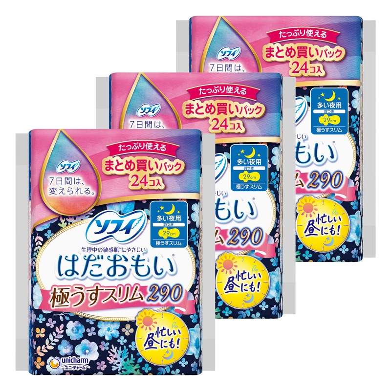 Sofy Hadaomoi Ultra Thin Slim For Many Nights, With Wings, 11.4 inches (29 cm), Pack of 24 Pieces x 3 (Sanitary Supplies, Napkins)