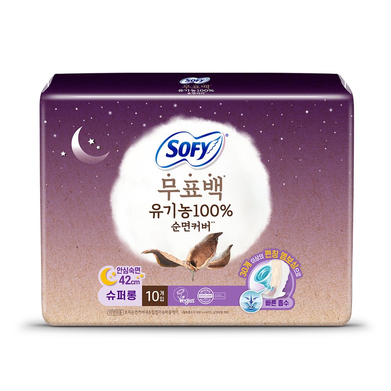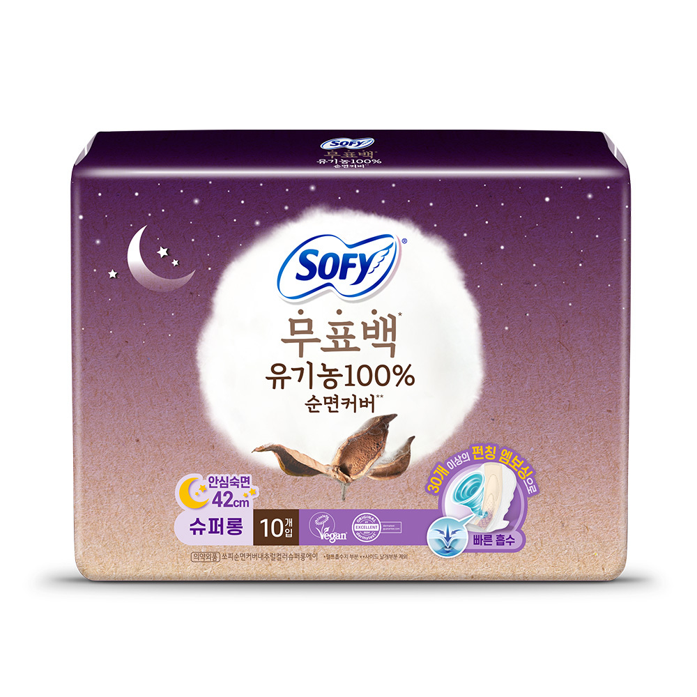 The non-bleached sheet provides carefree use, and the hip guard provides wide coverage of hip line for leakage-free night. The 100% pure cotton cover grown from soil provides gentle coverage of sensitive skin for carefree use. The unique punching embossing design of SOFY provides quick absorption and perfect adhesion on your body for carefree use.