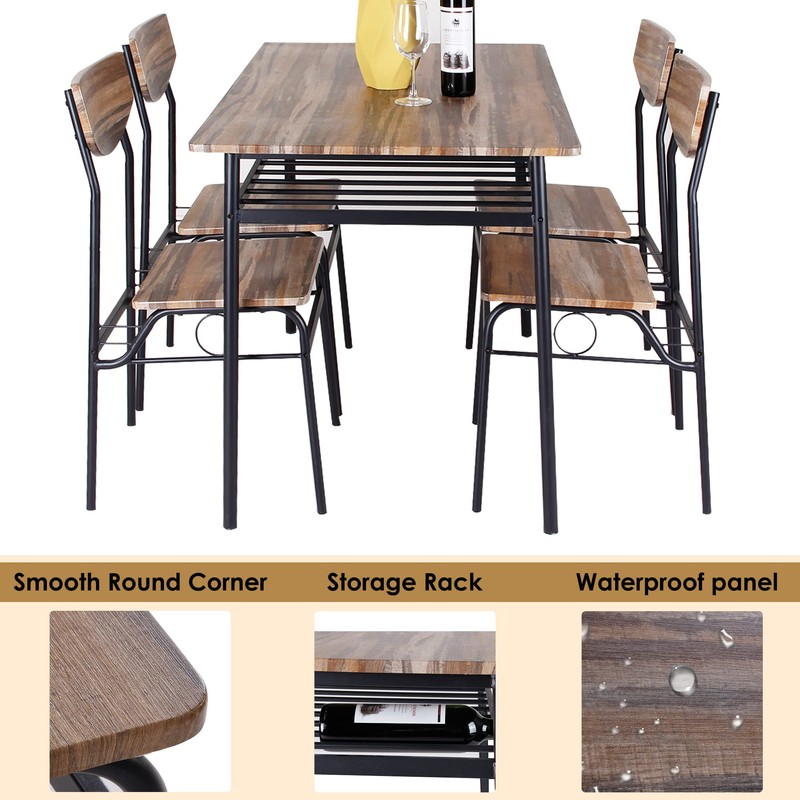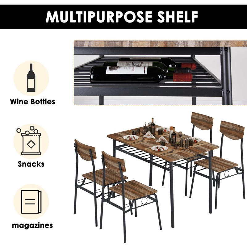 soges 5 Piece Dining Table Set for 4 Person, Kitchen Dinette Sets with 4 Chairs, Kitchen Table and 4 Chair Set with Storage Rack, Modern Dining Room Set with Wooden Top and Metal Legs