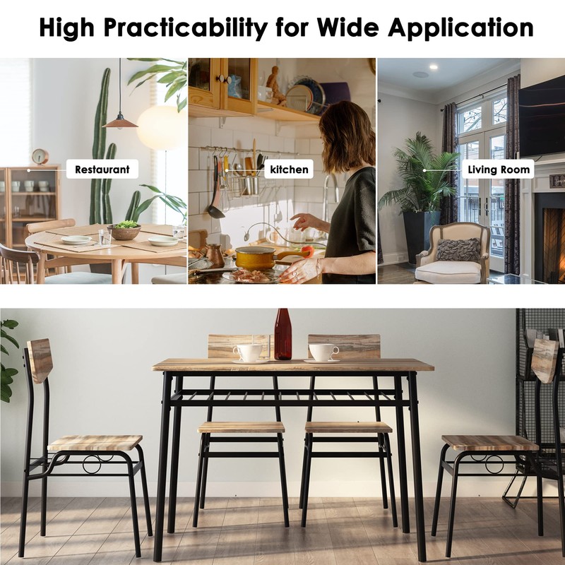 - 【5 Pieces Dining Table Set】: 5 piece dining table set, including 1 dining table(47.2L x 27.5W x 29.7H inches) and 4 dining chairs(17.3L x 18.8W x 33.4H inches), providing a perfect space for family or friends gathering. Besides, the chairs can be tucked under the dining table for more valuable space when it is not in use.
