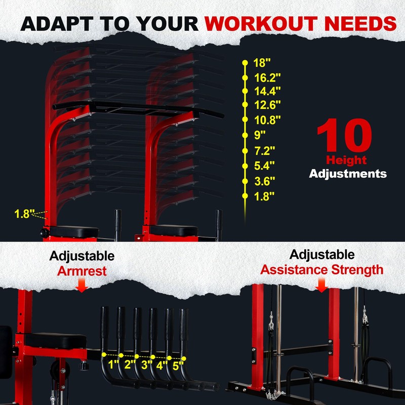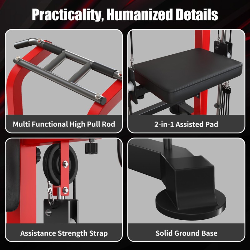 - Step by Step for Beginners: The pull-up bar station offers improved assistance to perform pull-ups. It strengthens the upper body and accelerates core strengthening. It's an ideal fit for those with heavier weight and insufficient muscle power. It serves as an ideal beginner's option for working out with an assisted pad.