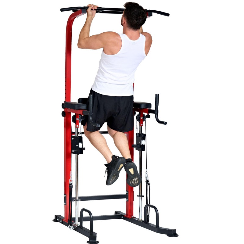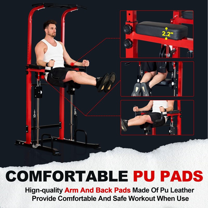 - Multi-functional Power Tower Station: This is a multi-functional power tower that supports vertical knee raises, push-ups, dips, pull-ups, reverse grip chin-ups, etc. It can help build your arms, core, shoulders, chest and back for a stronger body. Even if you're a beginner, you can perform these exercises with the help of the assisted pad.