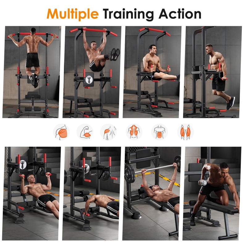 - 💪【All-around Exercise】: This versatile equipment allows you to perform a wide range of exercises, including pull-ups, push-ups, leg raises, dips, vertical knee raise and more. Target your leg, chest, shoulder muscles, and enhance your upper body strength with ease. This versatile design makes it the ideal multi-functional solution for targeting different muscle groups for a total body workout.