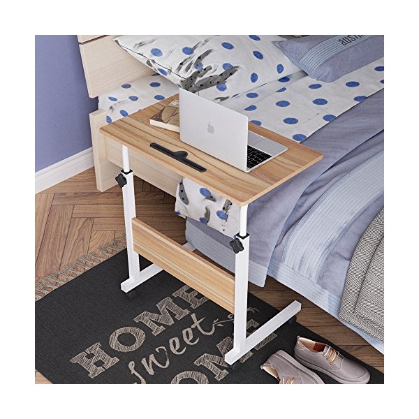 SogesGame End Table Height Adjustable Laptop Table, Portable Desk Cart Tray Mobile Side Table Sofa Table, Snack Table Industrial C Table for Coffee Snack Sofa, Oakï¼05#3-60OK-S8-US