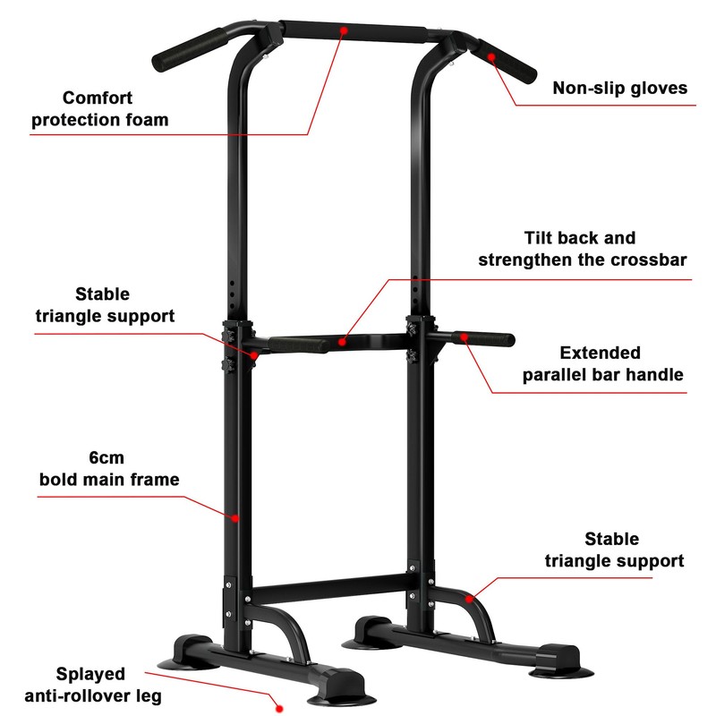 - [Multi-function] Power tower can support a variety of exercises, such as pull-ups, push-ups, pull-ups, push-ups, knee lifts, etc. It can exercise your muscles, arms, back, chest, shoulders and leg muscles.