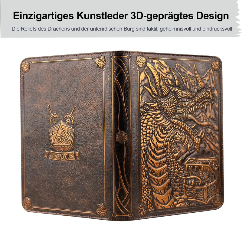 SogYupk 360 Seite Laden Trading Card Binder 9 Taschen Alben mit Reißverschluß 3D PU Leder geprägte Drachenkartenbücher Sammelkartenspiel Album für TCG MTG Pokmon Lorcana (Rotes Kupfer)