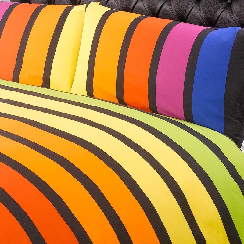 Soho Multi Stripe Duvet Cover Quilt Bedding Set, Blue Purple Orange Yellow Green, 2 pcs, Single Size - Bedroom Bed Linen by Rapport