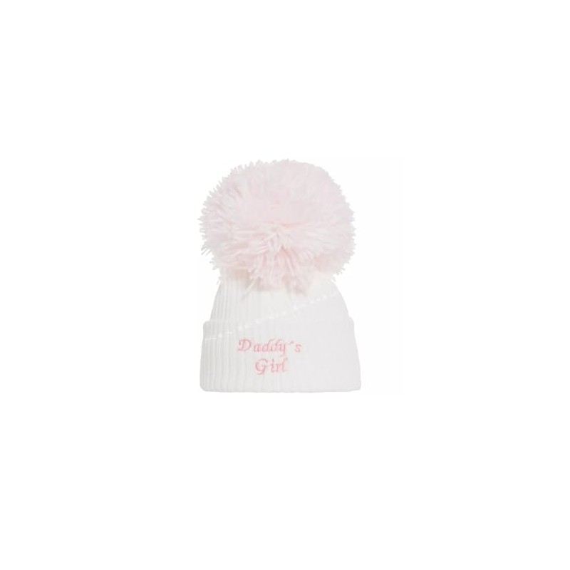 SOHOBABY™ British Made Single Pom Baby Girl Embroidered Baby Hats (UK, Age, 0 Months, 3 Months, White (Daddys Girl))