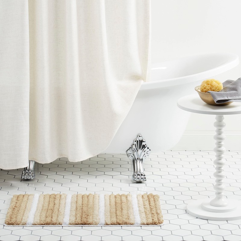 • STYLISH STRIPE DESIGN: Fashion and function meet in the SoHome Chino Bath Mat. It features a stylish, tonal stripe design in neutral beige-taupe that will add a chic, modern accent to your bathroom decor while also giving you a soft place to step.