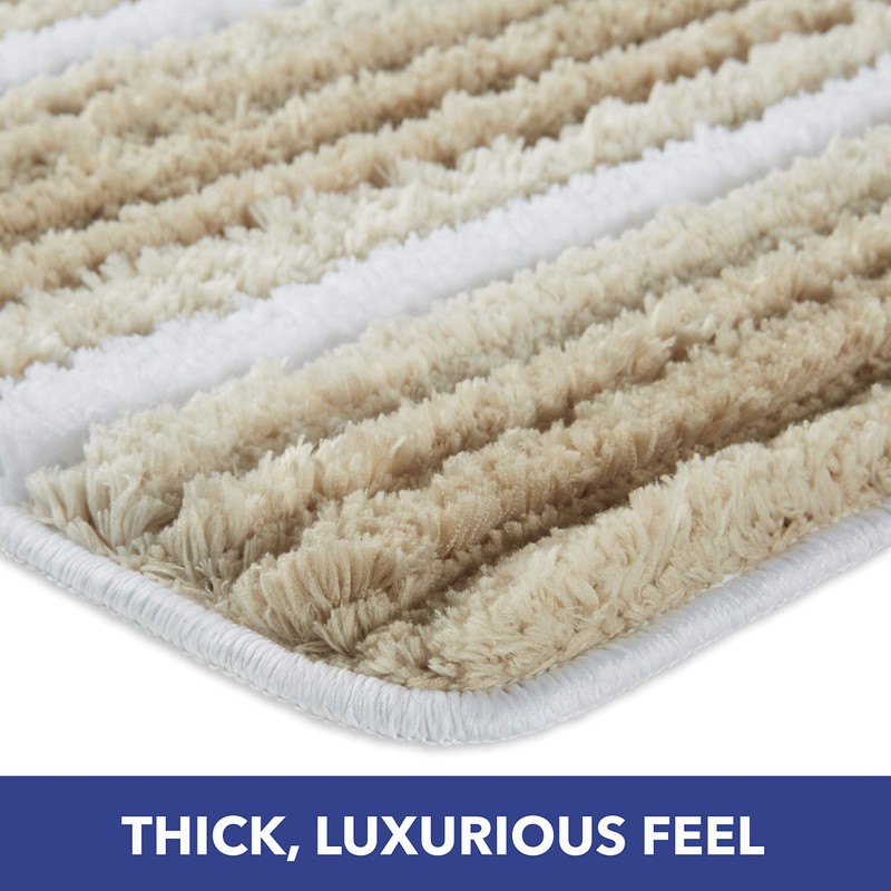 SoHome Striped Bathroom Rug Mat, Super Soft Extra Absorbent Shag Bath Mat Rug, Perfect Plush Carpet Mat for Shower and Bathroom, Machine Washable, Non Slip, 20”x32” Beige