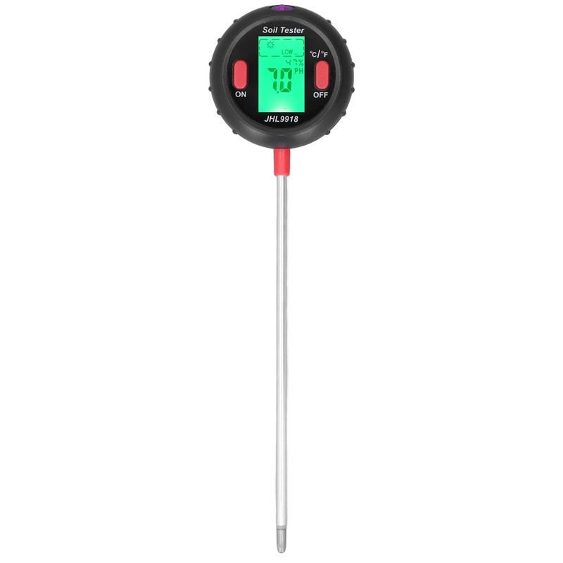 1、Multi Function: This multifunctional soil moisture meter can accurately measure soil moisture, light, soil temperature, soil PH. 2、Premium Material: This multifunctional soil moisture meter is made from ABS and stainless steel, which is sturdy and durable. 3、Wide Application: This multifunctional soil moisture meter is widely used in your garden, farm, potted plants, succulents, etc. 4、High Accuracy: This soil moisture meter features stainless steel probe in fine workmanship that ensures high accuracy and stable performance. 5、Clear Data: This multifunctional soil moisture meter adopts large screen for clearer measurement results and data display.