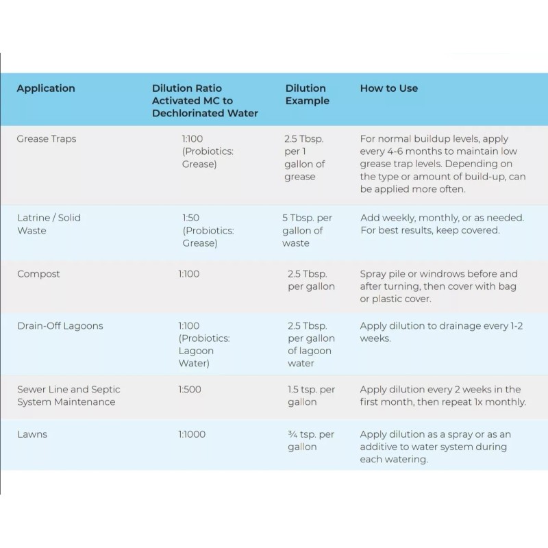 • Mixing Ratio: Dilute 1 mL per liter or 4 mL per gallon of non-chlorinated water.