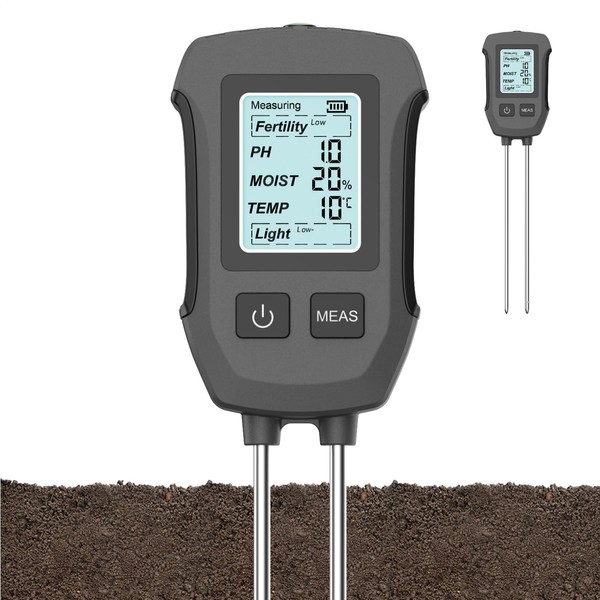 Soil Tester - Plant pH Tester for Soil - Digital Dirt Sunlight Intensity Testing Device 5-in-1 for Flower Beds Vegetables Fruits