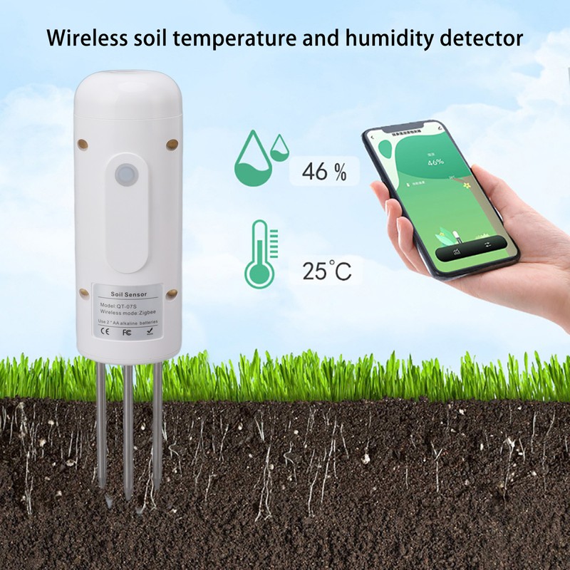 1、Wide Application: The soil tester is suitable for a wide range of soils and can be used in various places such as potted flower boxes, courtyard gardens, farmland vegetable plots, greenhouses, lawns, etc. 2、APP Control: Digital soil tester adopts wireless signal transmission, APP real time view temperature and humidity data, temperature and humidity history curve, linkage APP automatic waterer to realize automatic irrigation. 3、Stainless Steel Probe: Soil moisture meter's probe is made of austenitic 304 stainless steel to prevent rust, electrolysis, acid and alkali corrosion, to ensure the long term operation of the probe. 4、IP67 Waterproof: Soil tester's protection level is IP67, which can prevent water from entering the inside of the body and has better sealing performance. 5、Superior Performance: Soil moisture meter has industrial grade performance, low power consumption, highly sensitive measurement, stable performance.