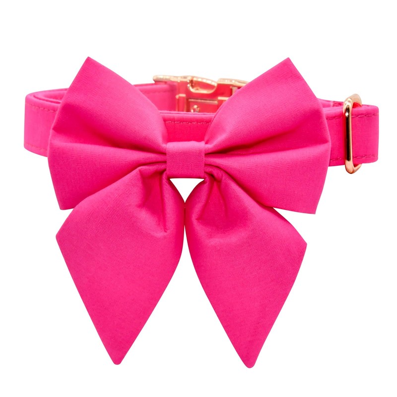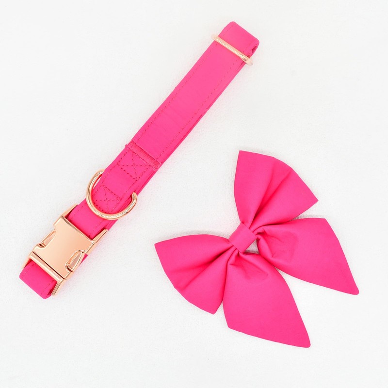 Soild Fushcia Girly Dog Bow Dog Collar Accessory, Detachable Bowtie, Adjustable Collar for Small Medium Large Dogs