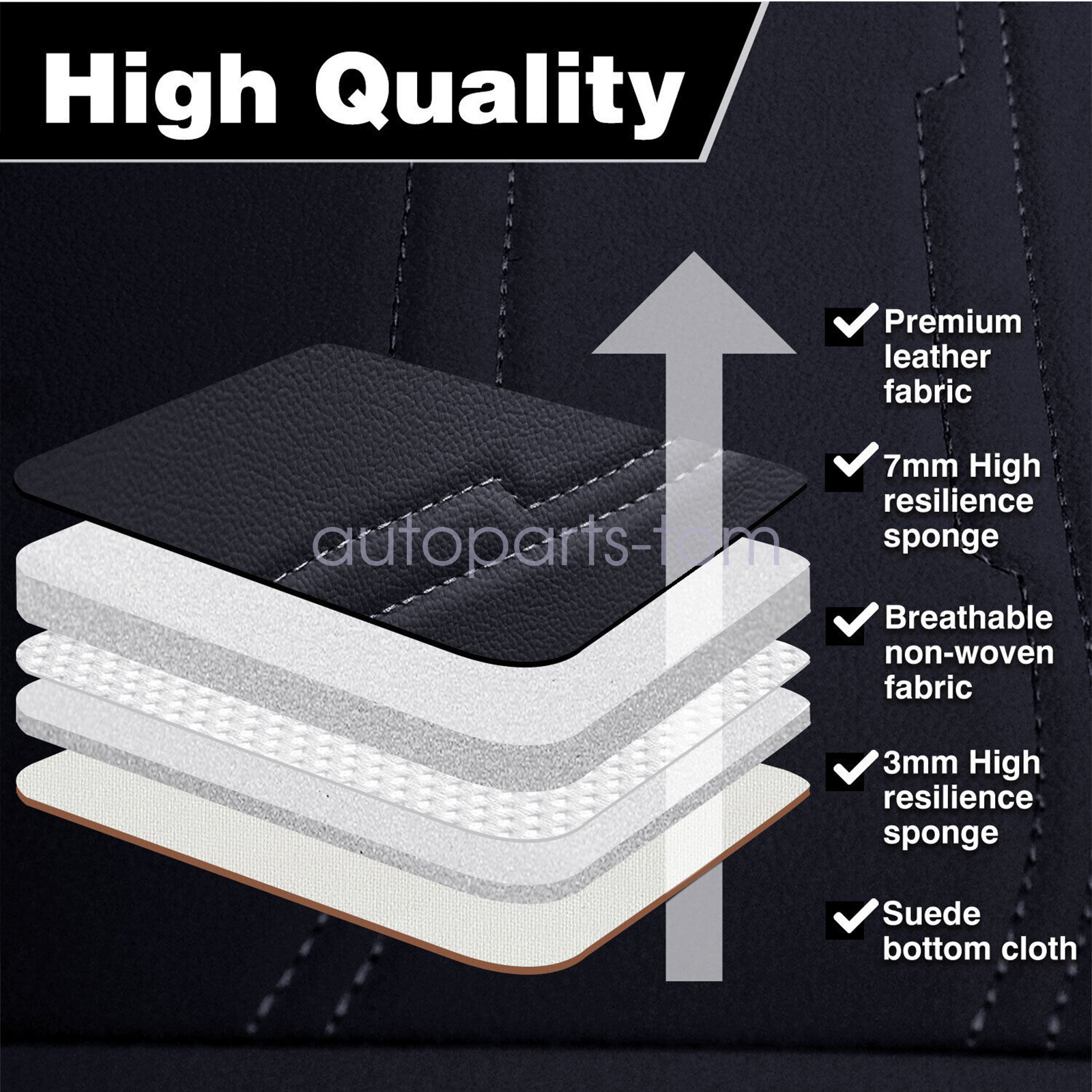 Premium faux leather is breathable, comfortable and has good waterproof. The interior of the seat cover is filled with sponge, the appropriate thickness allows you to sit for a long time without getting tired.