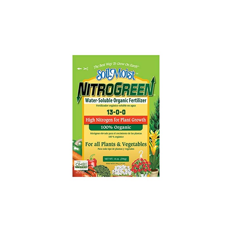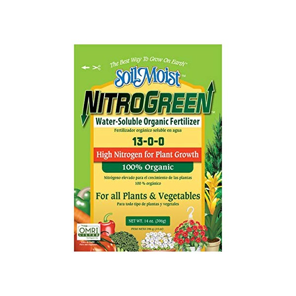 SoilMoist NitroGreen 100% Organic Fertilizer 14-oz High Nitrogen 13-0-0 for Plant Vegetable Growth