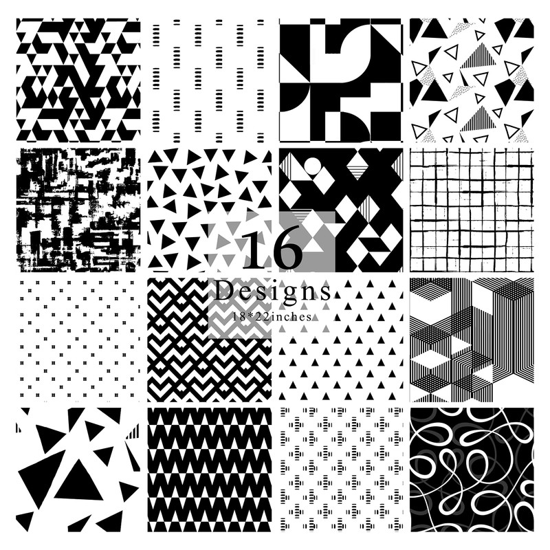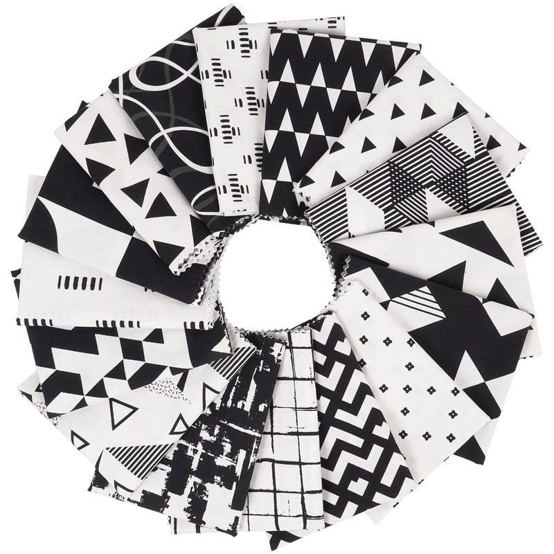 Soimoi 16 Pc Fat Quarter Bundle, Geometrical Print 18"x 22" DIY Patchwork-100% Cotton Pre-Cut Quilting Fabric Black&White