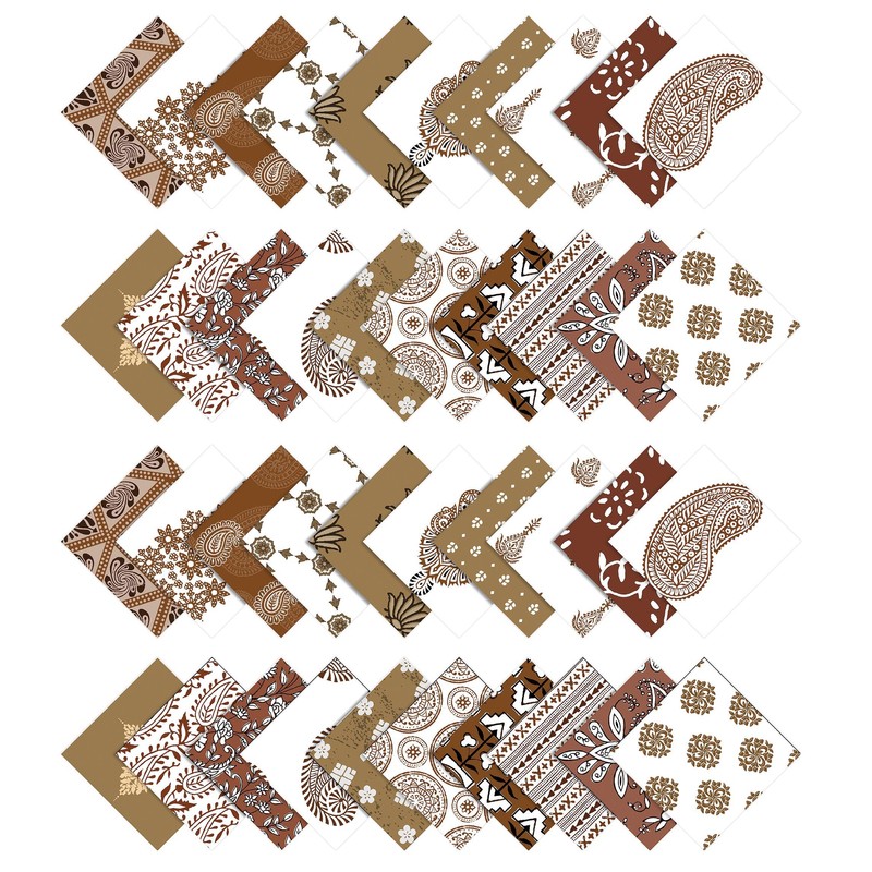 Soimoi 40Pcs Block Print Cotton Precut Fabrics for Quilting Craft Strips 2.5x42inches Jelly Roll - Light Brown