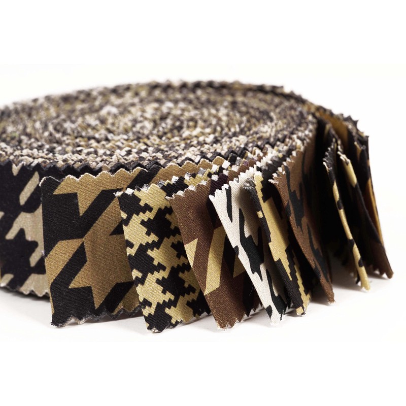 Soimoi 40Pcs Houndstooth Print Precut Fabrics Strips Roll Up 1.5x42inches Cotton Jelly Rolls for Quilting - Brown