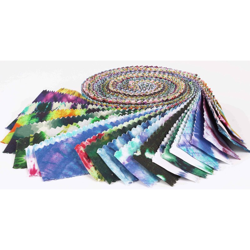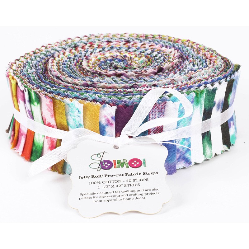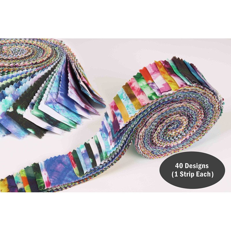 Soimoi 40Pcs Tie Dye Print Precut Fabrics Strips Roll Up 1.5x42inches Cotton Jelly Rolls for Quilting - Multicolor