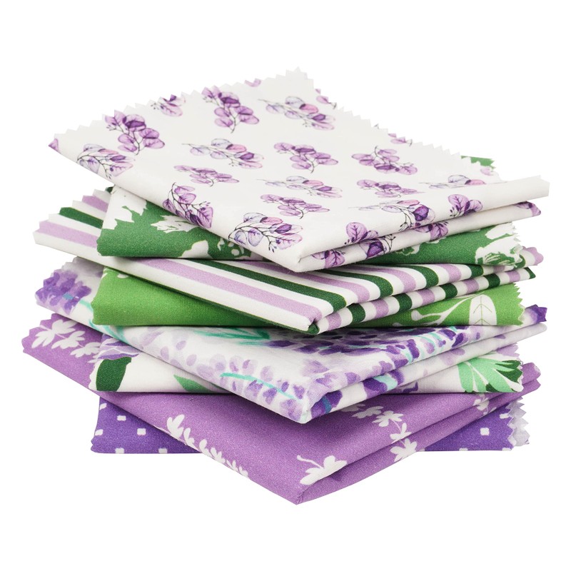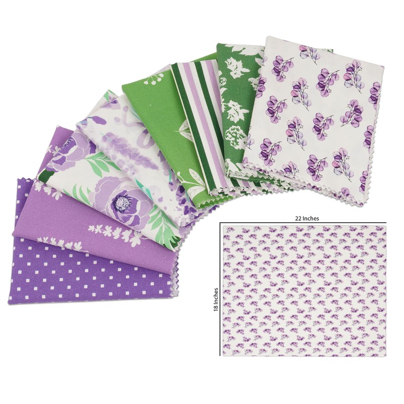 Soimoi 8 Pc Fat Quarter Bundle-Florals Print 18"x 22" DIY Patchwork-100% Cotton Pre-Cut Quilting Fabric Green & Purple