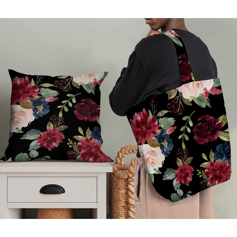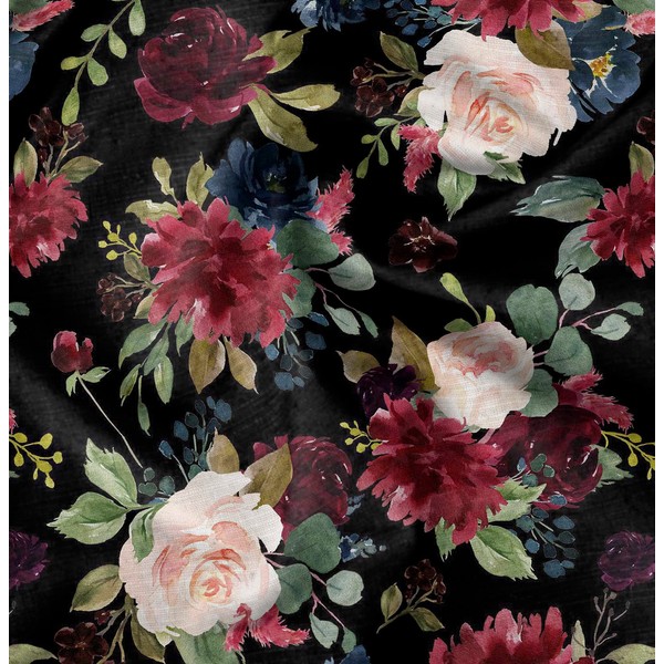 Soimoi Black Viscose Chiffon Fabric Leaves & Peony Floral Print Fabric by the metre 42 Inch Wide