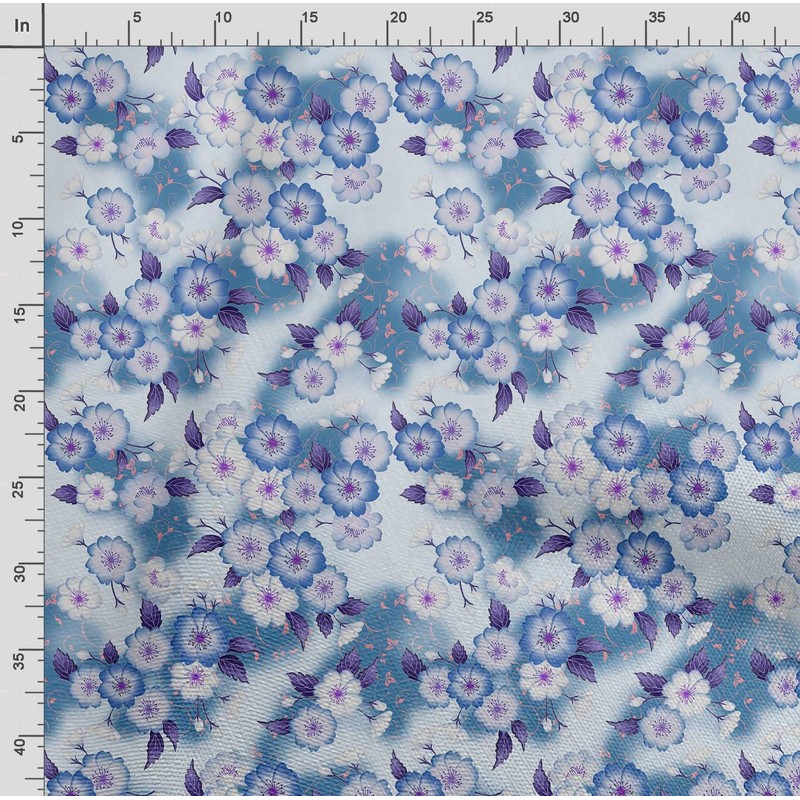 Soimoi Chinese Floral Print - Blue, Premium Cotton Cambric Fabric - Medium Weight Material for Quilting, Kurtis, Blouse, Kids Clothing, Tunic, Curtains - 42" Inch Wide, 1 Metre