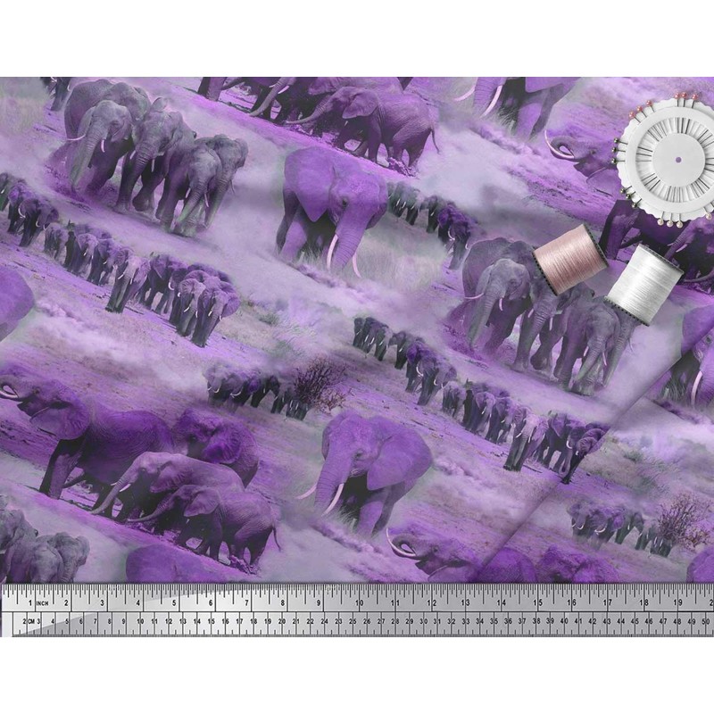 Soimoi Poly Georgette Fabric tree & elephant Animal Print Fabric by metre 52 ...