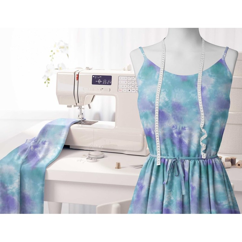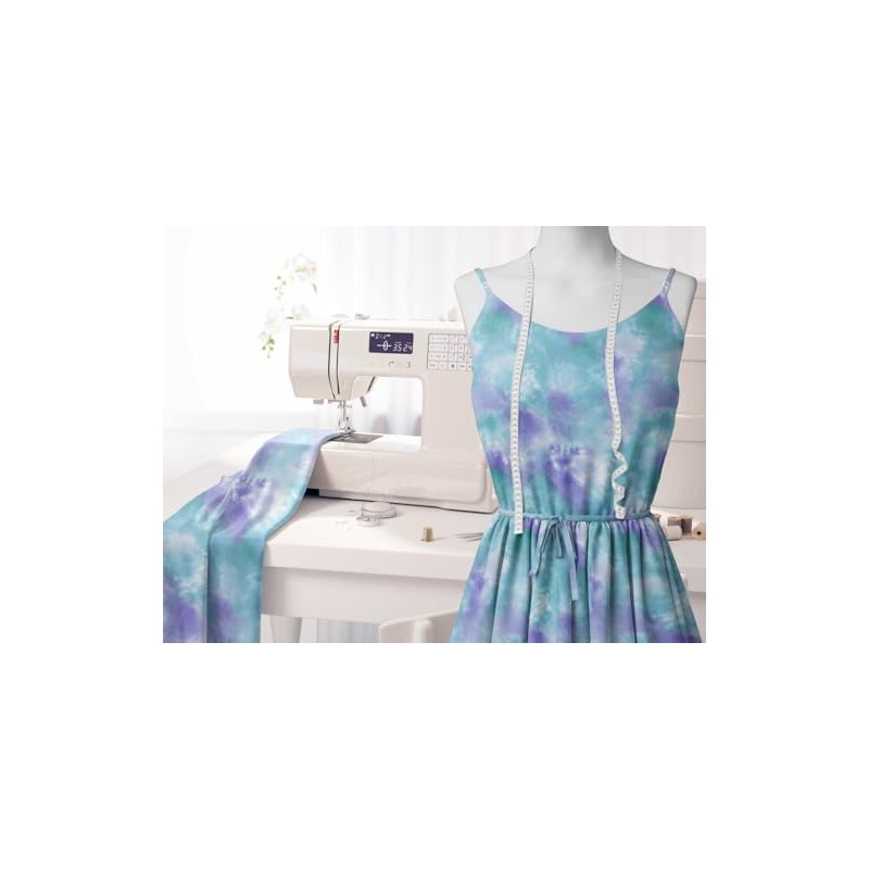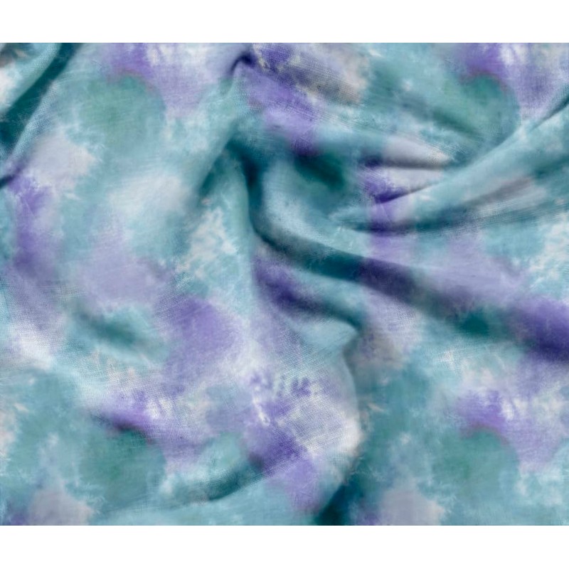 Soimoi Unstitched Crepe Fabric, 1 Meter - 42" Wide, Blue - Tie & Dye Print, Soft and Light Weight Fabric Material for Suits, Garments, Dresses and Accessories