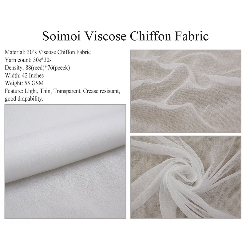 - ✅ Material: Viscose Chiffon Fiber (high tpm yarn) | Yarn Count: 30s*30s | GSM: 55