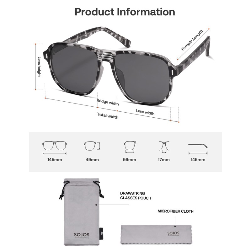 - [Highly Resistant] The SOJOS Aviator sunglasses are made up of high quality Plastic frame, UV400 Polarized lenses and solid metal hinges, which makes for a more resistant experience and longtime usage.