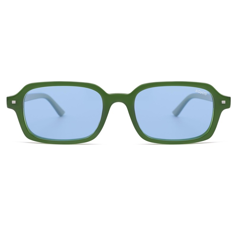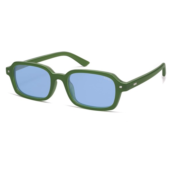 SOJOS Retro Rectangular Polarized Sunglasses Womens Mens, 80s 90s Small Trendy Slim Narrow Square Sunnies SJ2610, Green/Blue Tinted