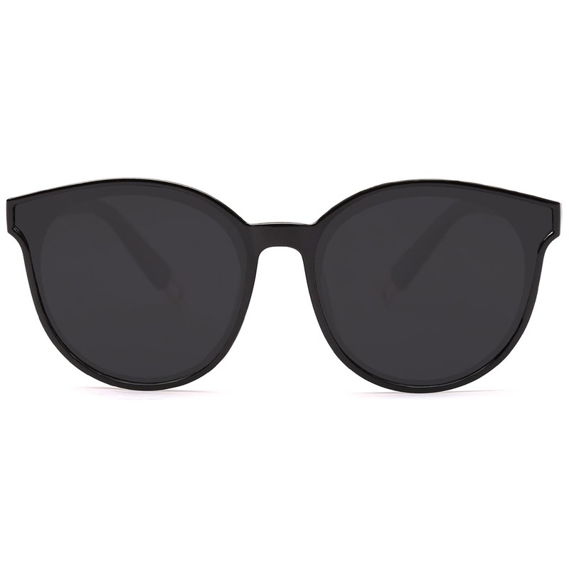 SOJOS SJ2057 Polarised Sunglasses Women's Large Round Men's Retro Vintage UV400 Protection Glasses, Black Frame/Grey Lens