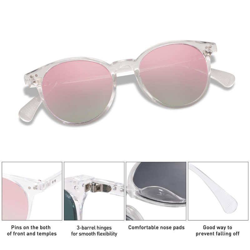 SOJOS SJ2113 - anteojos de sol polarizadas clásicas redondas para mujeres y hombres, estilo clásico UV400, Claro/rosa, Small
