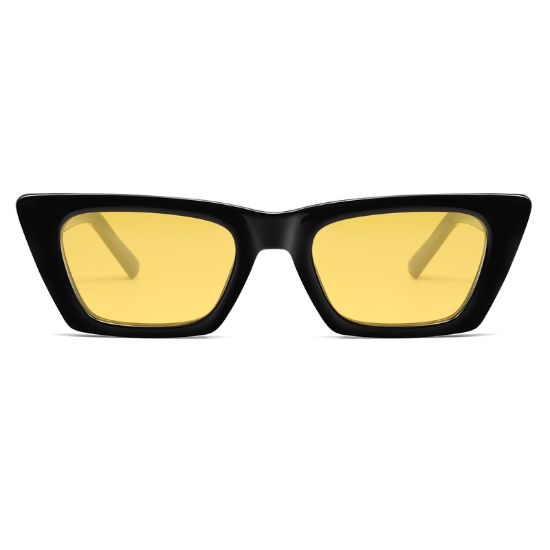 SOJOS Trendy Rectangle Polarized Sunglasses for Women Men Retro Narrow Cateye Sunnies SJ2354, Black/Yellow, Night Vision, Medium