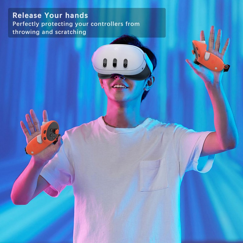 • Comfortable Grip and Perfect Protection: The controller grip compatible with Quest 3/Quest 3S is made of soft silicone material, ensure that the controllers are held comfortably on your hands for extended gaming sessions. Enhanced grip with non-slip texture prevents controller slipping and provides better control. Reserved hole accommodates original wrist strap for added protection and stability. Perfectly protecting your controllers from scratches and dirt, enhancing your gaming experience!