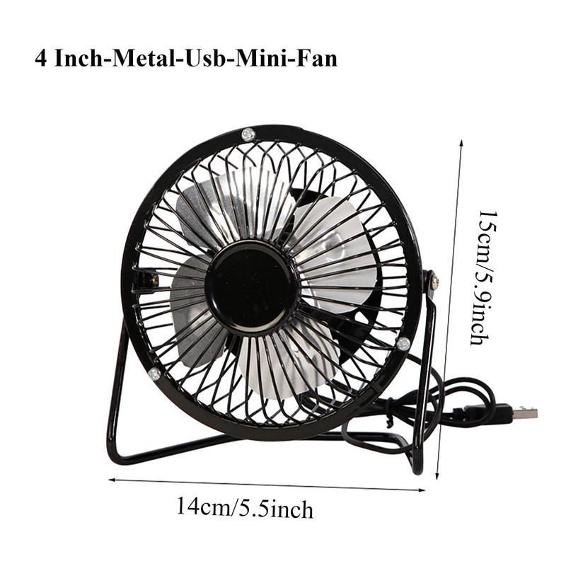 Sokelinn-six 4 Inch Small Usb Desk Fan, Metal Mini Quiet Personal Cooling Fan for Home Office Car Travel (Black)