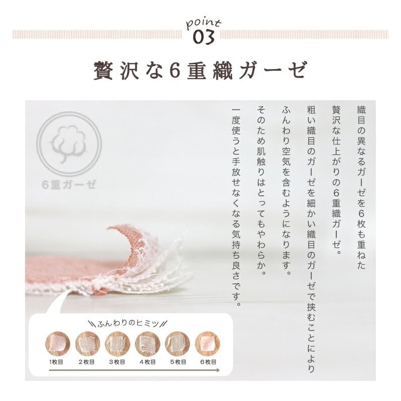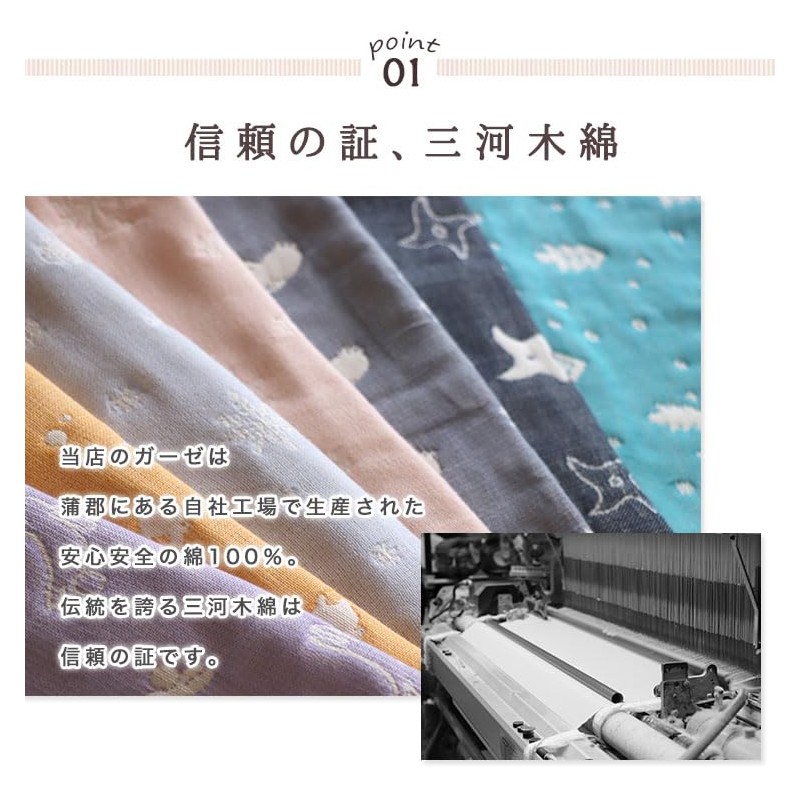 - This gauze blanket is made from 100% cotton made in our own factory in Kabaguni City, Aichi Prefecture, and is made with a soft 6-ply fabric