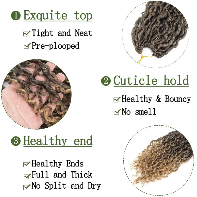 - Beautiful compliments:Boho goddess locs, beautiful and chic, soft and fashionable, exquisite and natural, feels like a goddess, looks like a queen. You are sure to win lots of compliments with these Goddess Locs crochet hair.