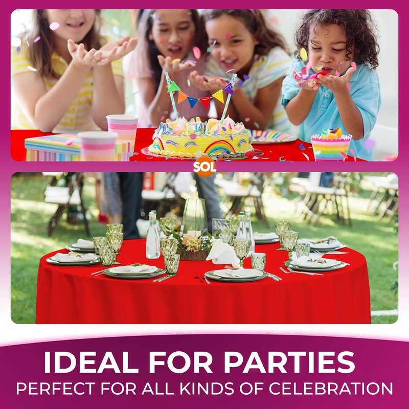 - Easy To Tidy Up And Throw Away - Our round tablecloth red is a disposable table cloth. These round tablecloths for circular table make clearing up at the end of the evening very easy. It is perfect as a basic throwaway table cloth for round table.