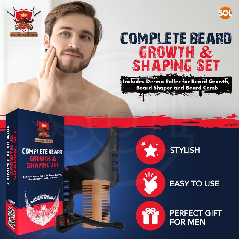 SOL Beard Growth Kit with Beard Roller for Growth for Men, Beard Comb and Wood Comb Beard Kit for Men Beard Care Kit For Men Beard Grooming Kit with Beard Derma Roller Beard Grooming KIt for Men