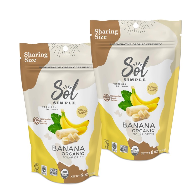 SOL SIMPLE Regenerative Organic Certified, Dried Banana | 6oz Snack Pack (2 Bags Total) | One Ingredient | Vegan | Non-GMO | No Added Sugar | Fair Trade | Dried Fruit | Organic