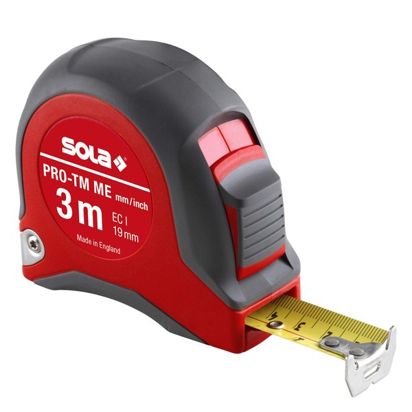 SOLA Tape Measure – Pro-TM ME – 3 m / 19 mm – Robust Professional Tape Measure with Belt Clip – Steel Tape Yellow with mm/Inch Scale – Accuracy Class I – Roll Meter with Movable End Hook – Length 3