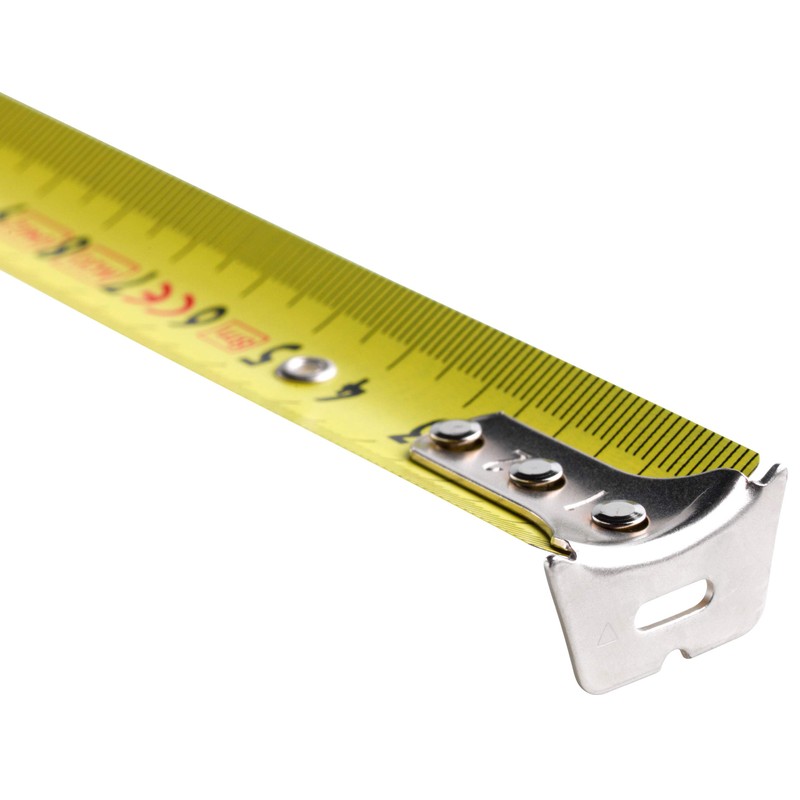 • Strap: The 25 mm wide steel band is equipped with a highly abrasion-resistant yellow anti-reflective coating. Thanks to the precise digital printing process of the scale, the measuring tape 8 m achieves a measuring accuracy of ±0.9 mm (corresponds to EC accuracy class I).